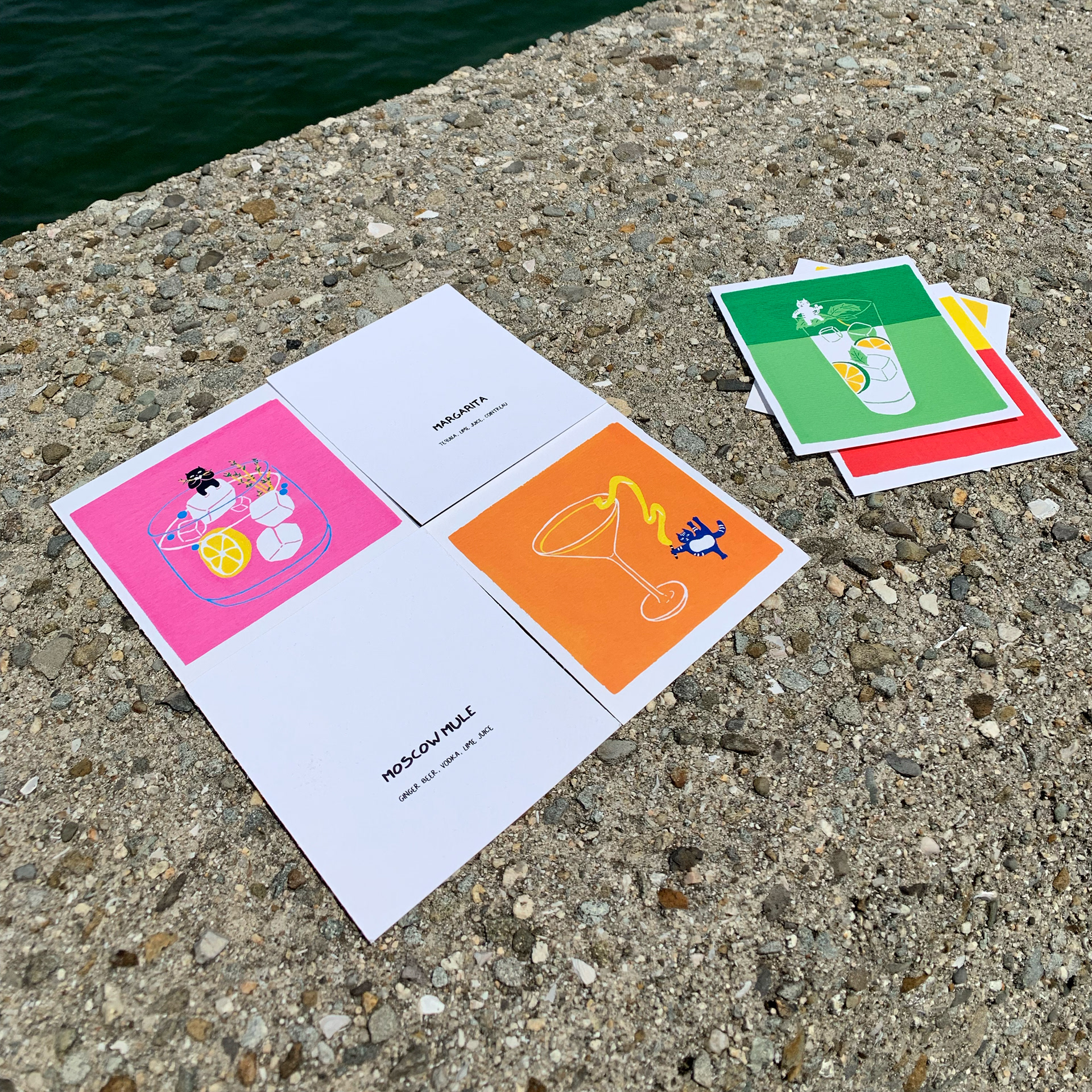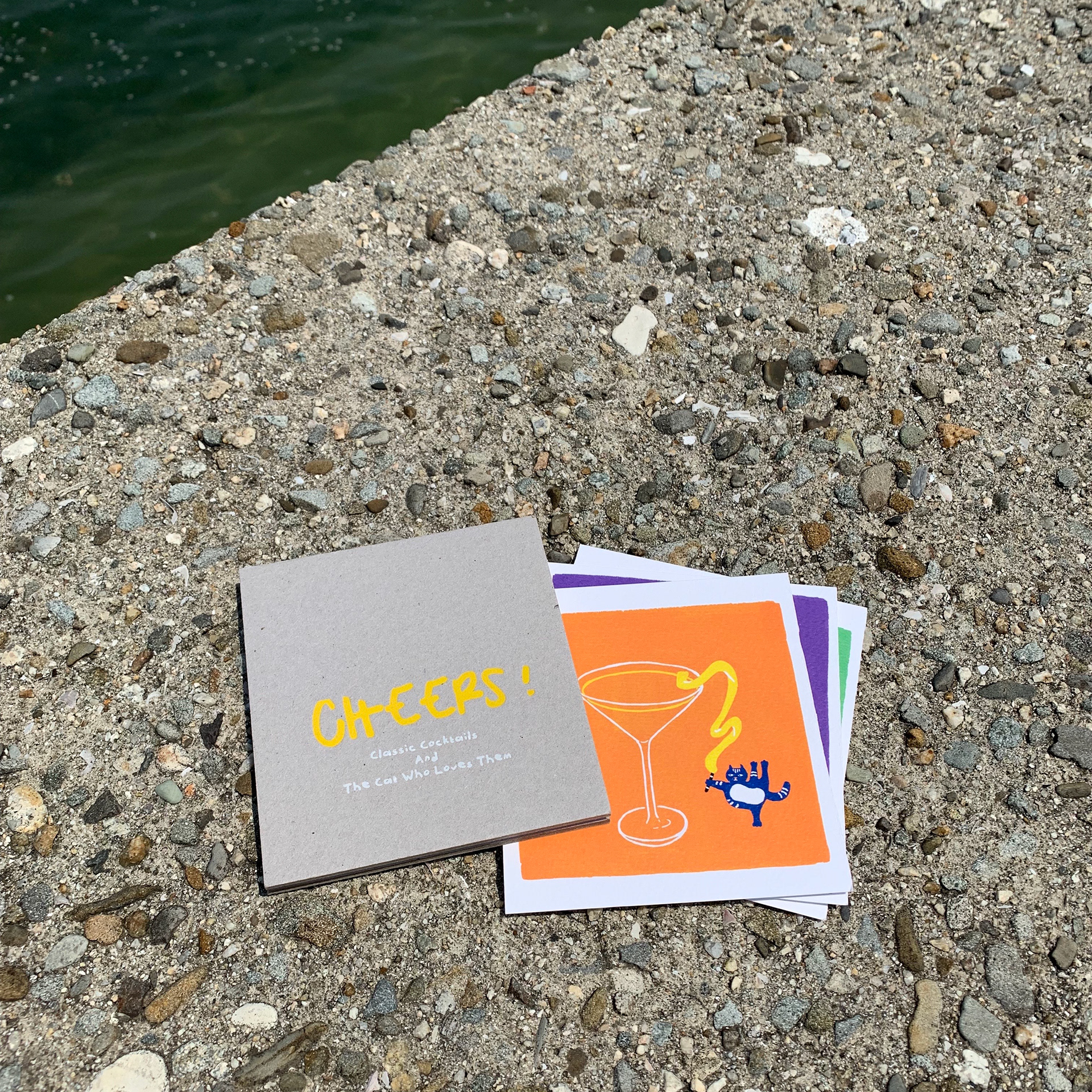 Garfield combines her love for cats and cocktails in an interactive way, imagining 8 different cocktails with 8 unique cats. This series is called "CHEERS!" and is published as a book using offset printing.